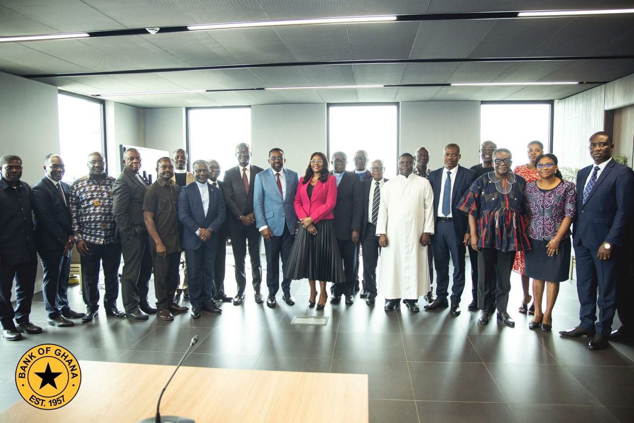 Bank of Ghana Grateful to Representatives of the Clergy in after a successful and productive engagement with them on the preparation towards the development of a framework to guide Non- Interest Banking and Finance. The meeting which was held the Bank Square, saw all the three governors, the advisor and the Directors of Banking Supervision Department and Communication Department of the Bank of Ghana in attendance.