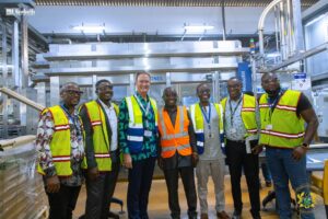 At Guinness Ghana Ltd, the Minister and her delegation were received by the Managing Director, Mr Frédéric Ferraille, and senior management for discussions and a tour of the production facility.