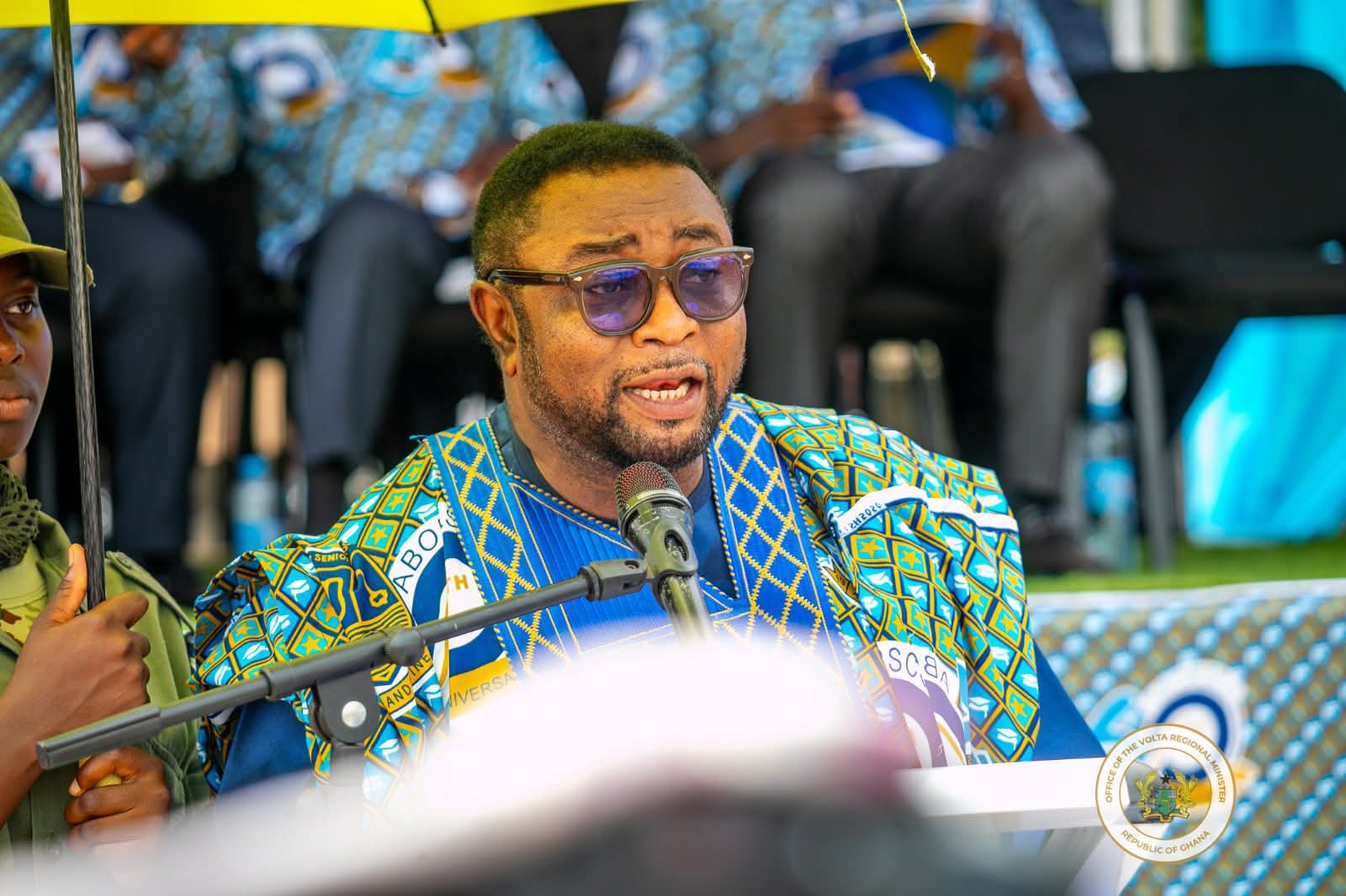 Elvis Afriyie Ankrah who delivered the speech on behalf of Chief of Staff, Julia Debrah, at Abor Senior High School’s (ABORSCO) 60th-anniversary celebrations on 21st February, 2026 at School Campus.