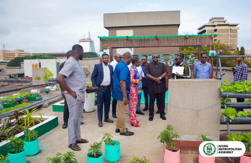 The rooftop garden, located at the top of the Accra City Hall (AMA Head Office) and titled “Green Above the Skies of Accra”, is being implemented by the Amamomo Youth Group under the Youth Climate Action Fund (YCAF) Phase II.