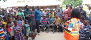 Madam Fati Kine Lam, the NADMO Bono Regional Director, presented the items. She thanked the chiefs and the entire community for their support of the victims and assured them of the government’s assistance. She advised the victims to be law-abiding and called for peace between the leadership of the two tribes. The Bono Regional Director also appealed to individuals and corporate bodies to come to the aid of the victims.