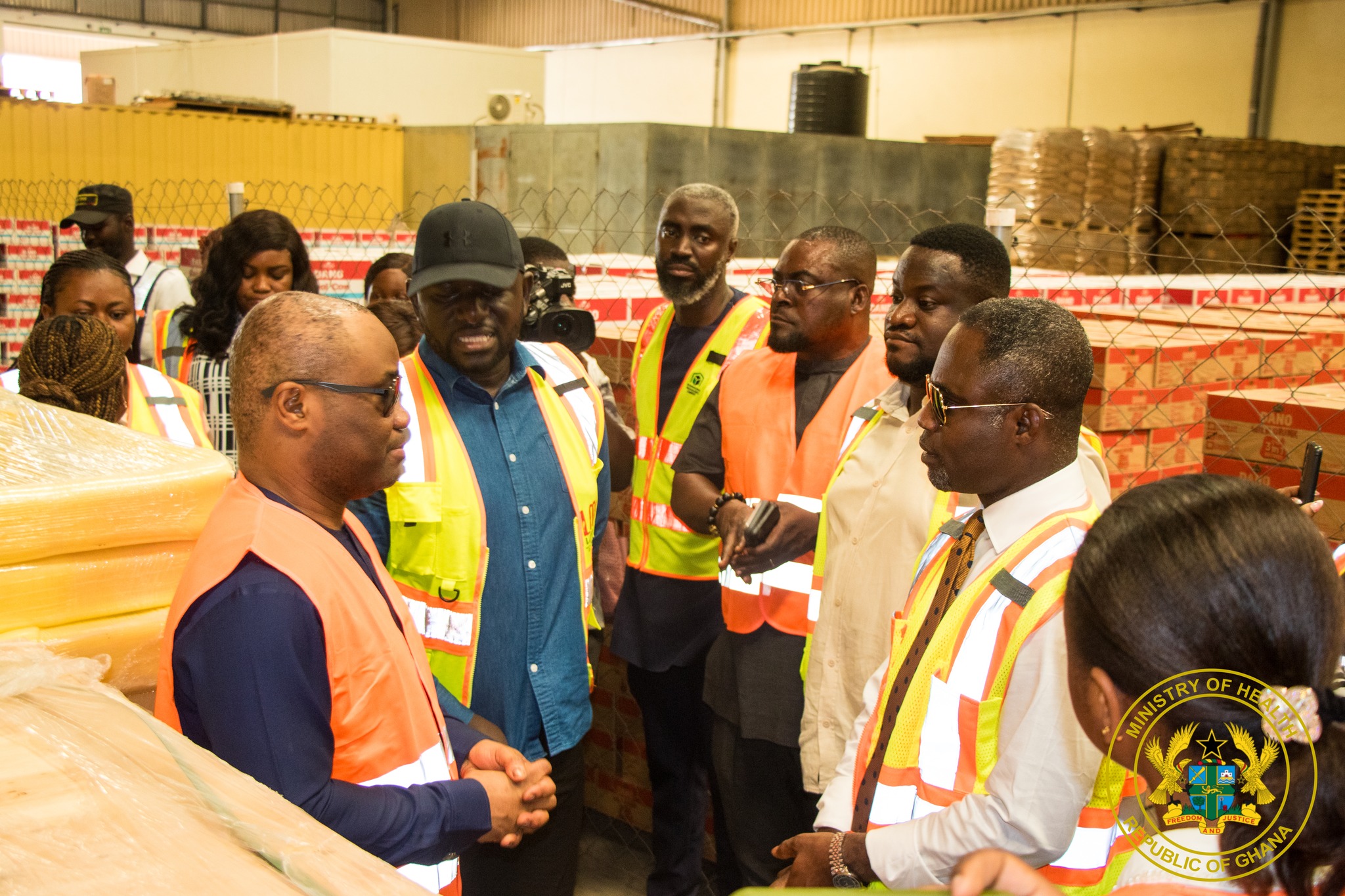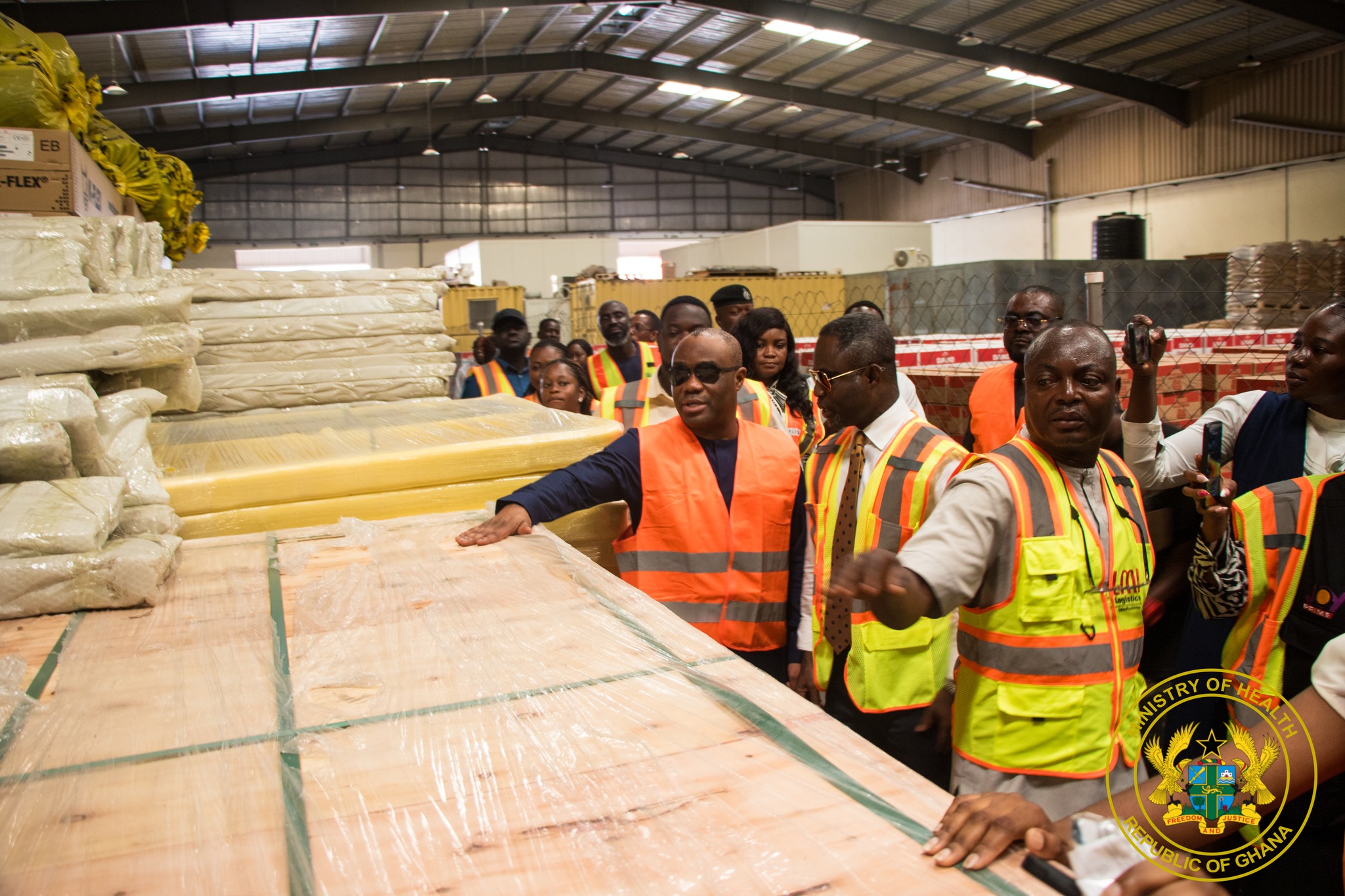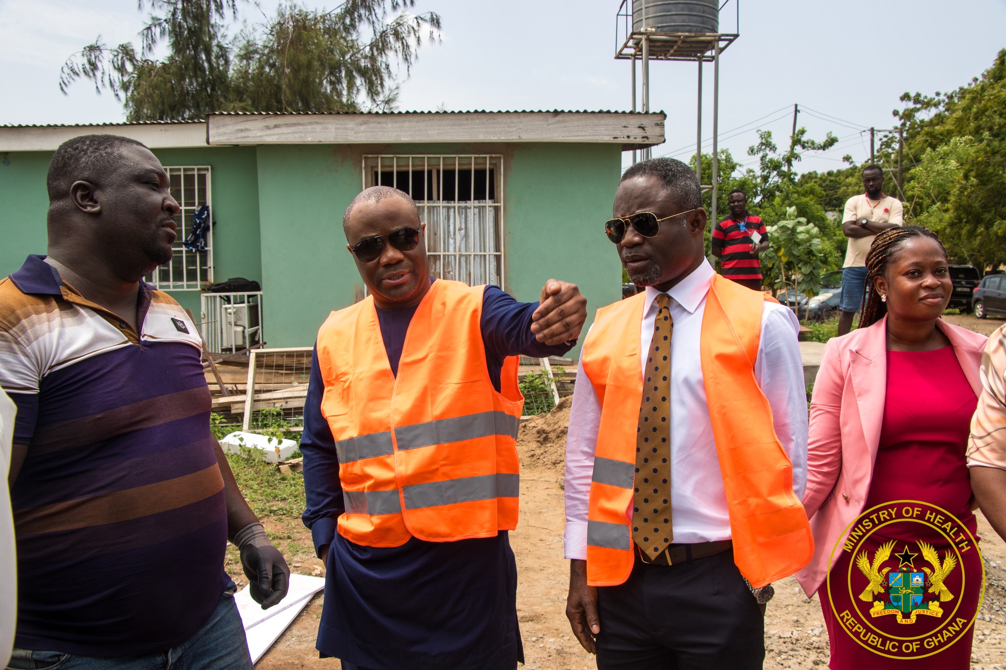 The Minister for Health, together with the Minister of State in charge of Government communication, Felix Ofosu Kwakye, visited the Mega Warehouse in Tema, where building materials for the facilities are being kept, before touring an active construction site at the Social Welfare area in Madina.