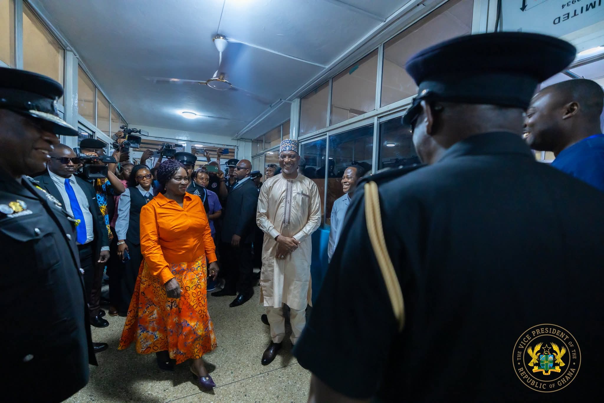 The Vice President also visited victims receiving treatment at the 37 Military Hospital and the Police Hospital, where she was received by the Inspector-General of Police, Christian Tetteh Yohuno. At the University of Ghana Medical Centre (UGMC), she was joined by the Minister for Health, Hon. Kwabena Mintah Akandoh, as she assured victims of Government’s full support during this difficult time.