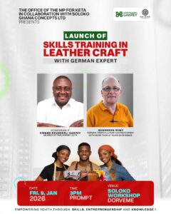 Keta MP Kwame Dzudzorli Gakpey is launching a leather craft skills training programme on January 9, 2026, at Doveme, to empower youth and artisans with practical skills, promoting entrepreneurship and job creation