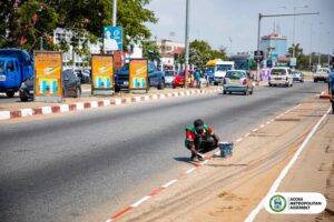The exercise, which began on Saturday, involved the painting of kerbs along medians and road shoulders from John Evans Atta Mills High Street through to Independence Avenue to improve visibility and eliminate dark spots across the city.