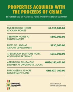 ​Every dollar stolen, every cedi diverted, represents an immediate and tangible subtraction from national development—a road unpaved, a hospital unequipped, a student left unfed. The properties listed are not just addresses; they are the physical manifestation of resources denied to the ordinary citizen.